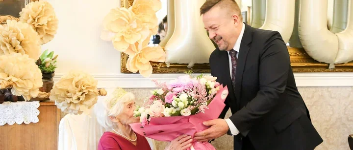 Setne urodziny pani Zofii w Przestrzeni Seniora – prezydent Żyrardowa dołączył do życzeń