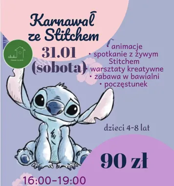 Karnawałowe szaleństwo z hawajskim klimatem i samym Stitchem — idealne popołudnie dla najmłodszych, pełne gier, kreatywnych warsztatów i wspólnych zdjęć. Warto zapisać dziecko — miejsca są ograniczone!